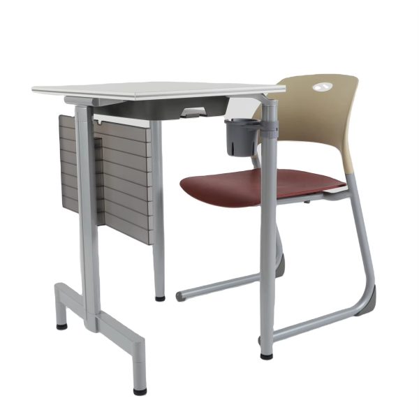 Single set of modern classroom desks and chairs